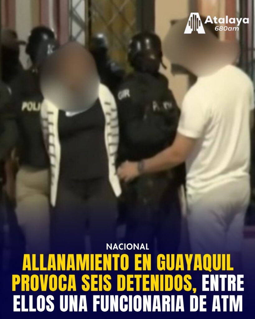 Durante un operativo ejecutado la madrugada de este martes, las autoridades realizaron varios allanamientos en Guayaquil y Daule. Entre los seis detenidos se encuentra una funcionaria de la Agencia de Tránsito y Movilidad (ATM).