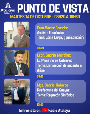 🕑 09h15 | Econ. Gabriel Martínez – Exministro de Gobierno, sobre Eliminación de subsidio al diésel